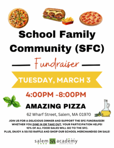 For take-out orders, be sure to mention it’s for the SACS fundraiser. 10% of all food sales will be donated to the SFC Fundraiser!